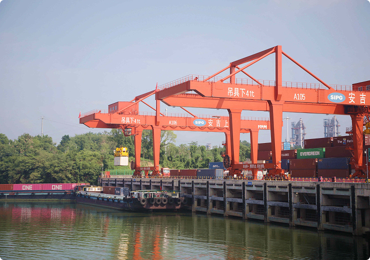 公司始终秉持“绿水青山就是金山银山”的科学发展理念,在上港集团的大力支持下,全面融入长三角一体化高质量发展行列,致力于内河绿色转型发展,着力打造港口,进出口货物集聚中心、分拨中心、围绕港口集疏运体系建设和绿色、便捷的物流运输平台。截止2024年底,安吉上港已完成集装箱进出口货物吞吐量累计达300万标箱,创开港后连续十三年位列全省内河集装箱年吞吐量首位。与陆路运输相比水运每标箱节约柴油70公升,现累计节约柴油达17.9万吨,降低二氧化碳排放量约53.9万吨。减少安吉至上海道路运输达150万辆车次,对减低公路道路运输和缓解城市道路拥堵起到了积极有效的推动作用。