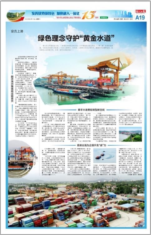 发展绿色水运,坚持以港兴业。以前码头只有单一的装货、卸货功能,如今随着海关、检验检疫、海事的入驻,安吉上港成了对外开放的口岸平台。“正因为有了这个口岸平台,吸引地中海、中远、中海、中外运等23家公司,在这里开辟国际航线支线点,这是码头和港口的本质区别。”黄少远自豪地说,目前,安吉上港已实现“全球通”,通达全球2700多个港口和地区,只要有航线、有客户需求的地方,都能到达。