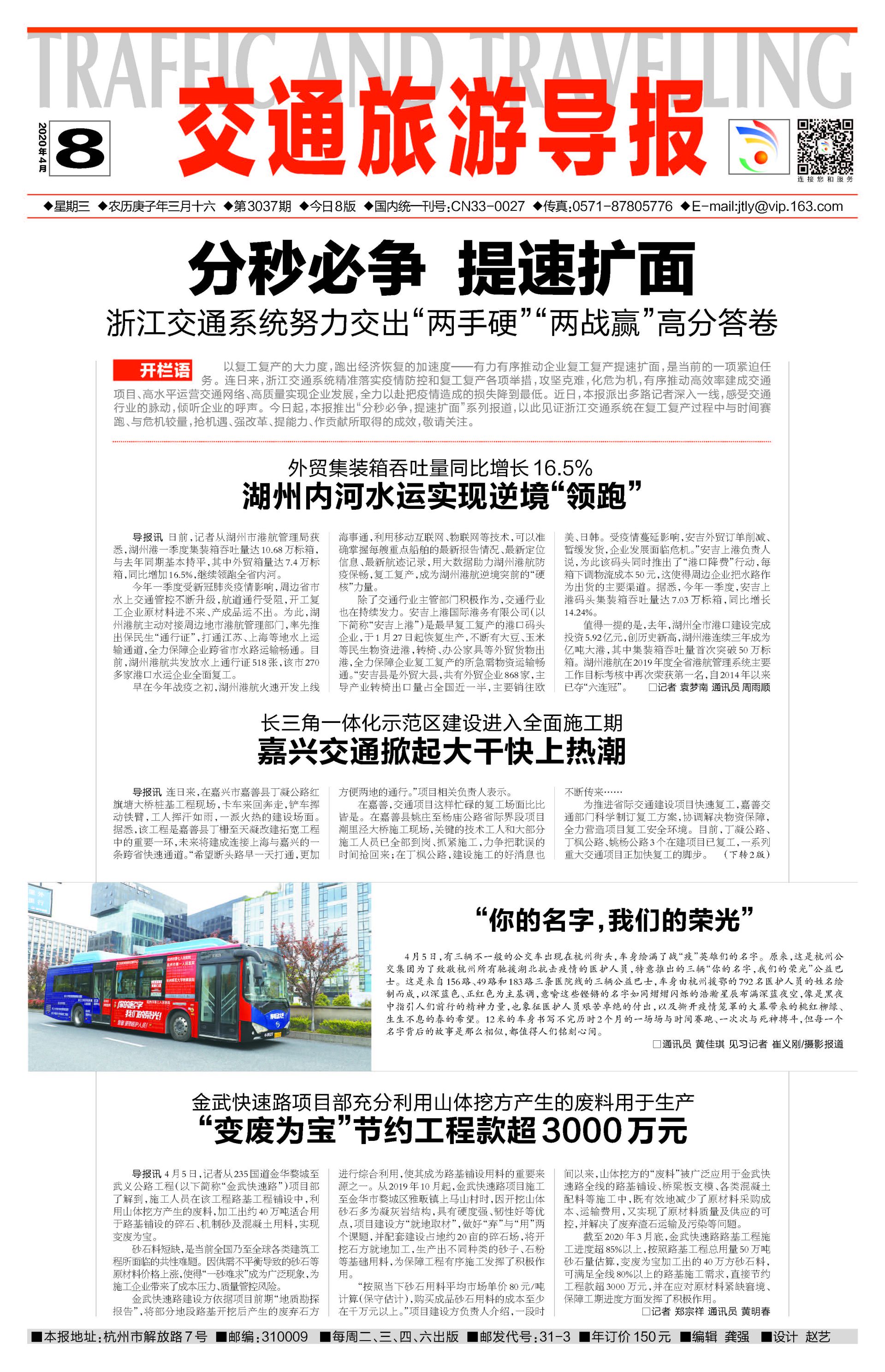 无论是码头整治,亦或是港口集约化发展,无不是浙江内河水运转型的一个缩影。“交通高质量发展就是要能够提供更安全、便捷、高效、绿色的运输服务。”浙江省港航局局长胡旭铭表示,浙江以供给侧结构性改革为主线,具体提出了“五个转型”。即港口发展加快集约化、专业化;内河航道加快生态化、网络化;运输结构加快集箱化、多元化;行业治理加快向以人为本、绿色智能迈进;水运经济加快向港产城融合协调发展……这成为浙江内河水运转型发展的关键“秘诀”。