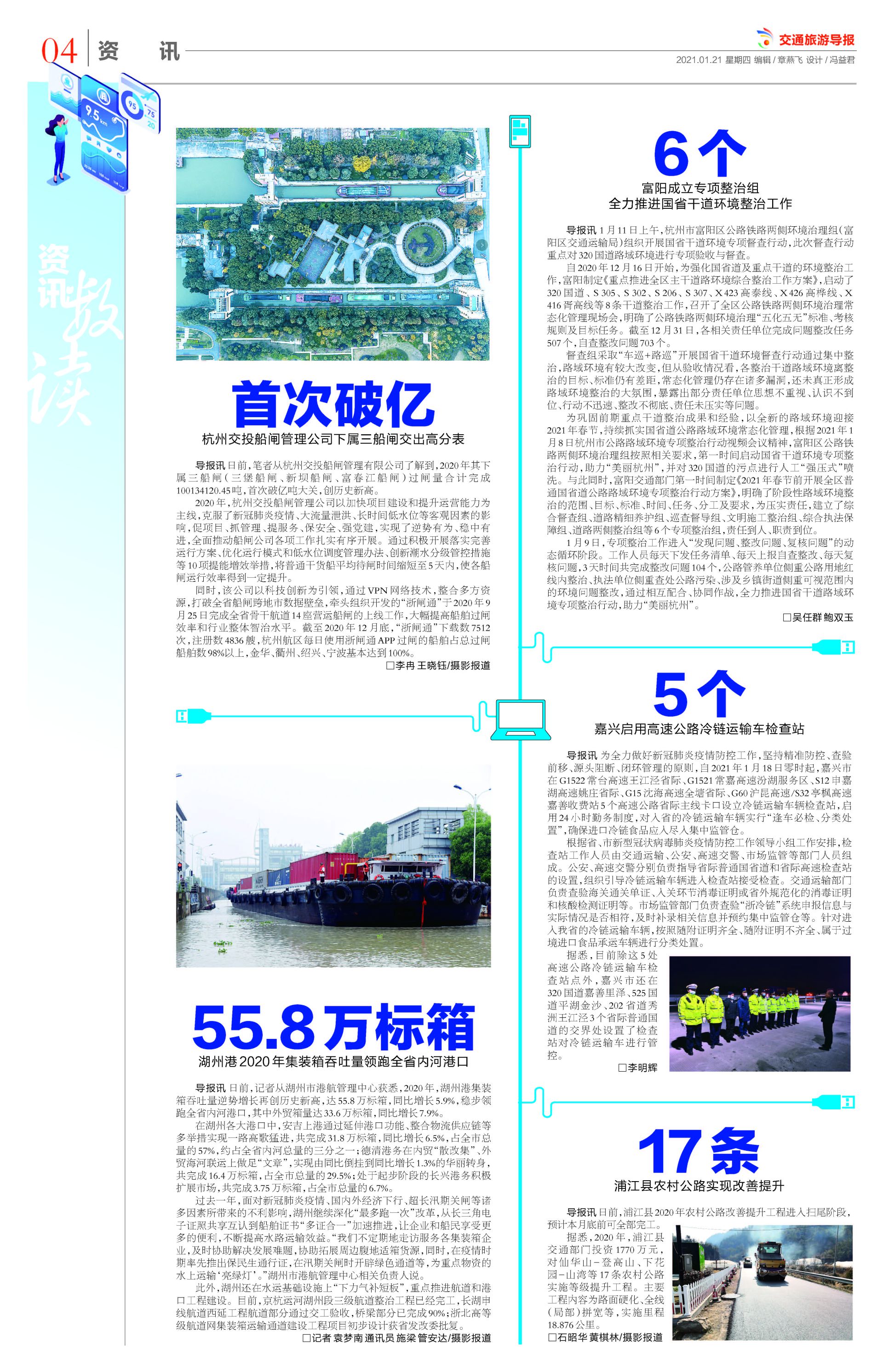 过去一年,面对新冠肺炎疫情、国内外经济下行、超长汛期关闸等诸多因素所带来的不利影响,湖州继续深化“最多跑一次”改革,从长三角电子证照共享互认到船舶证书“多证合一”加速推进,让企业和船民享受更多的便利,不断提高水路运输效益。